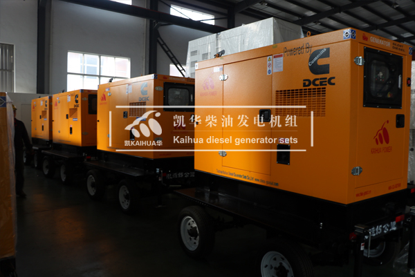 新加坡客戶在我公司采購的四臺移動靜音式柴油發電機組今日成功出廠,機組功率均為50KW,采用合資東風康明斯動力,配備凱華無刷發電機。我公司生產的移動式靜音發電機組,噪音小、制動可靠平穩,是各野外施工單位理想和移動電源。下圖為機組出廠現場: